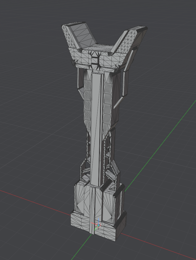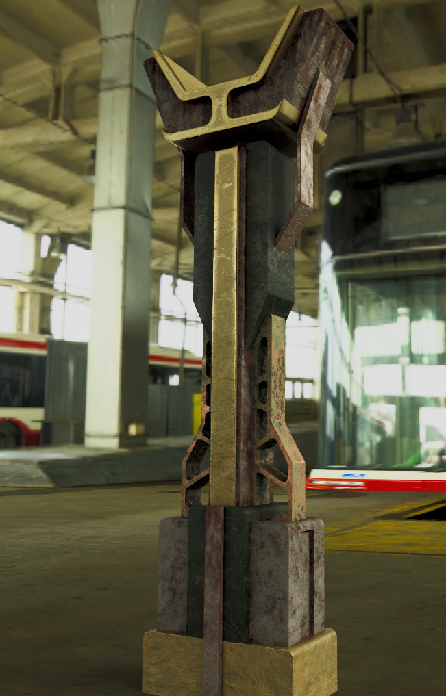 Thankfully, production design used CAD to design the columns, so I was able to grab the STL and use that as a base. Upon opening the file however, I noticed that every single piece was an entirely different object, and it would *not* play nicely with Substance. It took some time, but I eventually got into a workflow using Blender+Machin3Tools+MeshMachin3 (Incredibly powerful addons that I cannot recommend enough) to retopologise the model.